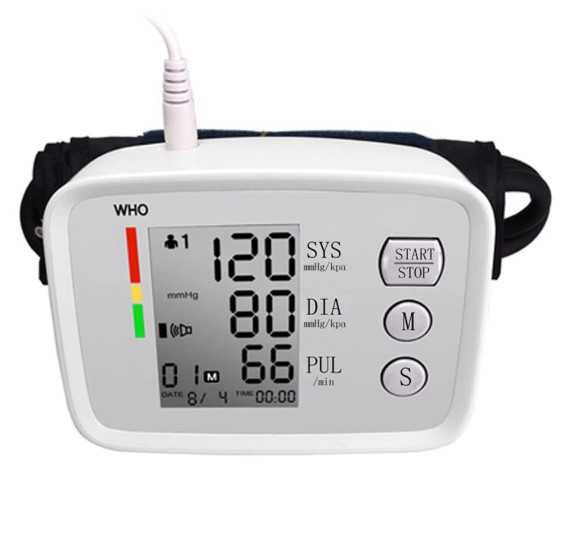 Ηλεκτρονικό Πιεσόμετρο Μπράτσου. Μετρά τη συστολική πίεση, τη διαστολική πίεση και τους παλμούς της καρδιάς. Εύκολο και άνετο στην εφαρμογή. Εύρος μέτρησης πίεσης 0-300mmHg Εύρος μέτρησης παλμών 40-199 παλμοί ανά λεπτό. Ακρίβεια μετρήσεων για την συστολική ή την διαστολική πίεση +/- 6 mmHg Ακρίβεια μετρήσεων για τον αριθμό των παλμών +/- 5 mmHg Ένδειξη για καρδιακή αρρυθμία Μεγάλη ευανάγνωστη οθόνη Μπορεί να λειτουργήσει με μετασχηματιστή ή 4 x AAA μπαταρίες (δεν περιλαμβάνεται τίποτε από τα 2 στην συσκευασία) Μνήμη 90 μετρήσεων Ένδειξη χαμηλής μπαταρίας Γρήγορη και αξιόπιστη μέτρηση. Περιχειρίδα 22-32cm.